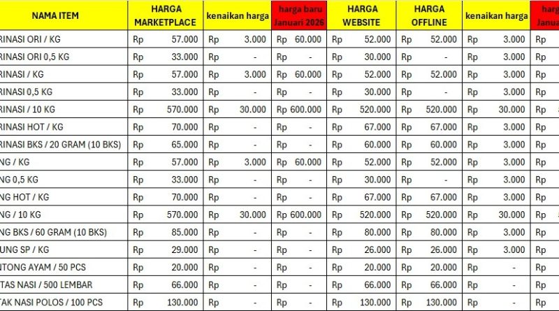 | 5 | Tepung Serbaguna | Rp.26.000./kg | Hub. Admin | Agen Min. Order 50kg |