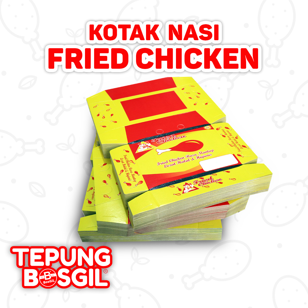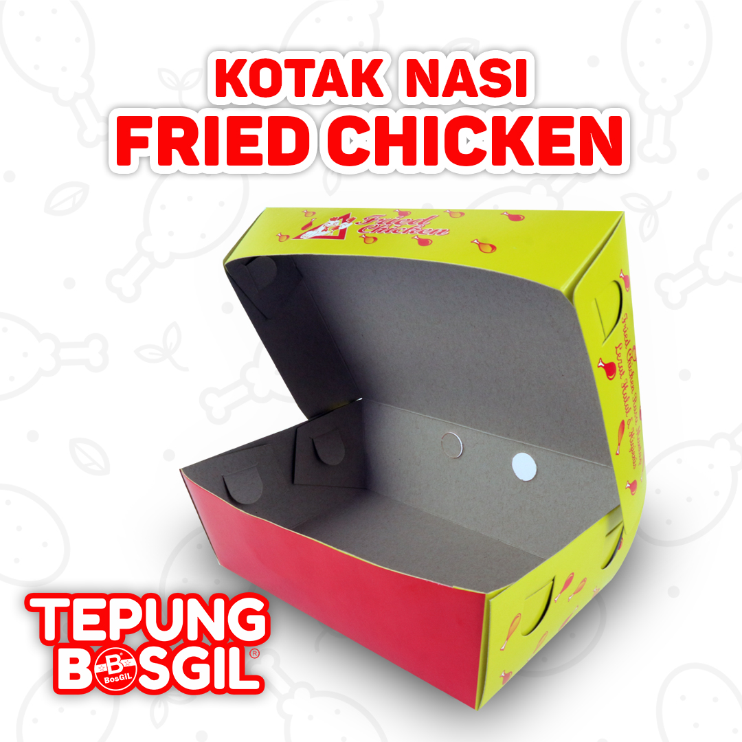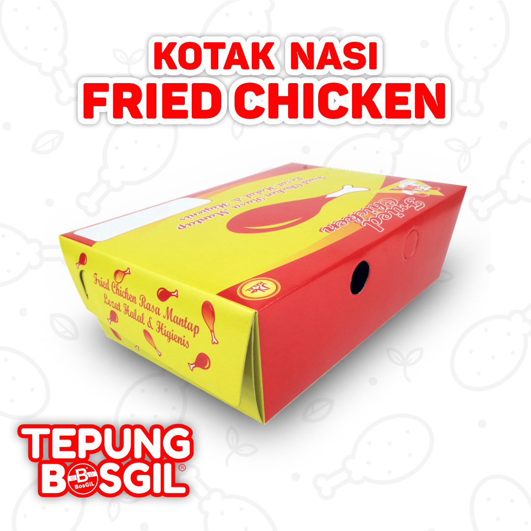 Kotak nasi fried chicken, dengan desain yang menarik dan simpel sangat cocok digunakan untuk usaha fried chicken anda.