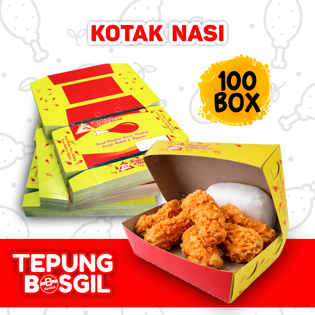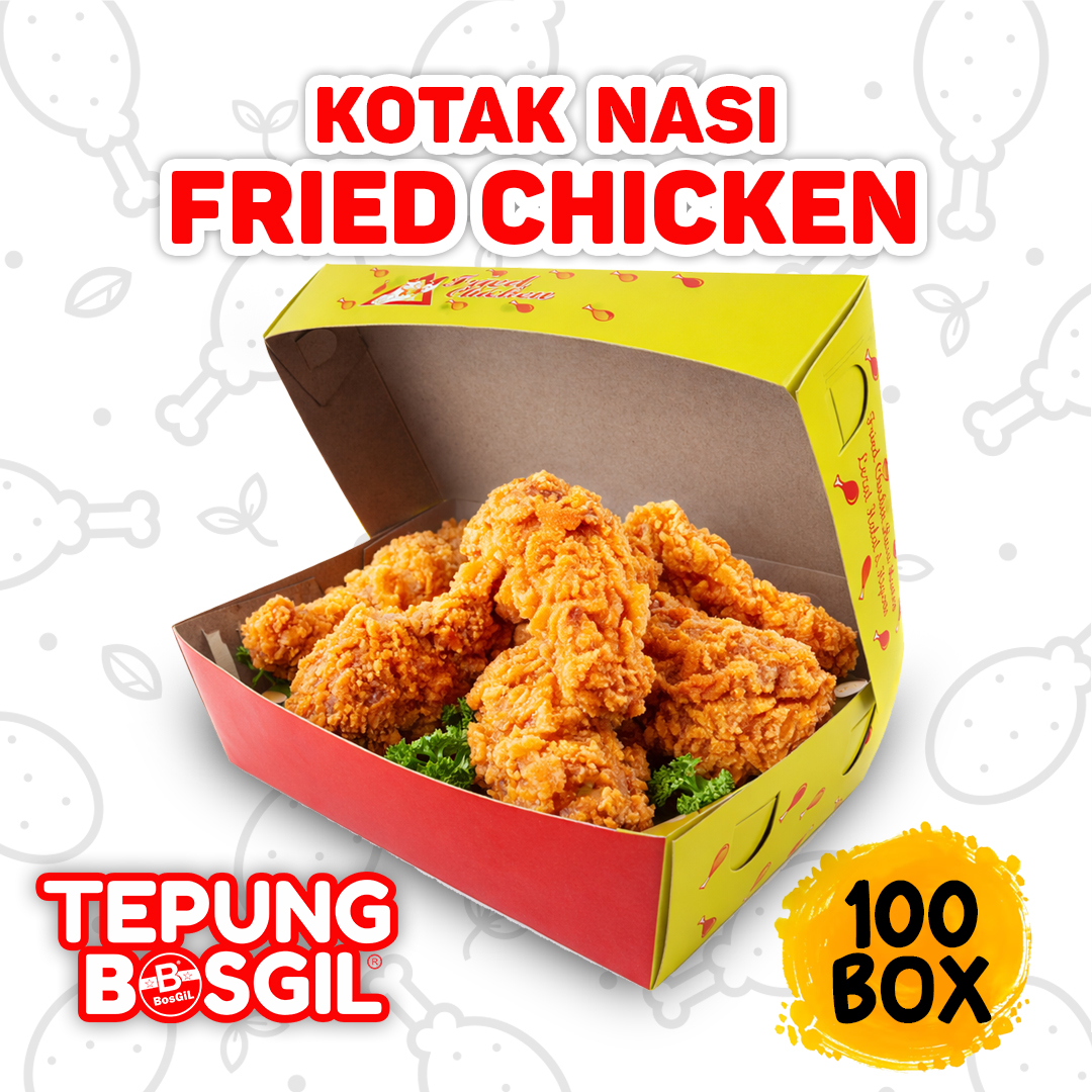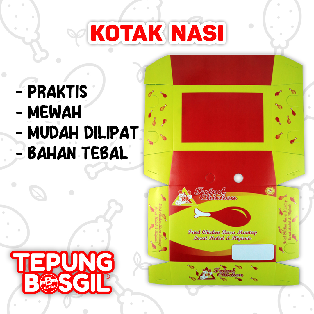 Kotak nasi fried chicken, dengan desain yang menarik dan simpel sangat cocok digunakan untuk usaha fried chicken anda.